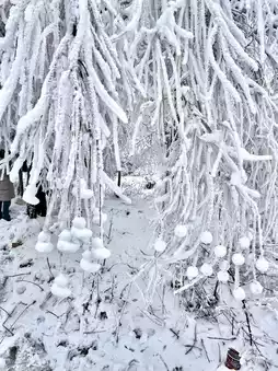 After leaving the station, walk along G212 Road, pass through the first village south of the Jialing River in Feng County, and walk along the road for about 30 minutes to reach Lingnan Park, where you can enjoy the ice and snow scenery along the way, as if you are in a fairy tale world.