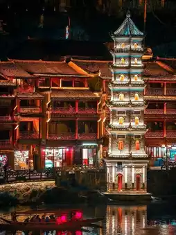Nanhua Gate, the landmark dividing the old and new Phoenix towns, was my entry point into the ancient town. Tuojiang River, the mother river of Fenghuang Ancient Town, offered stunning illuminated night views and a unique boat ride experience. The Miao Stilt Houses, featuring local architectural style, were also a filming location for "Chinese Paladin."