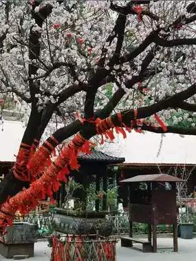 After the rain stopped, the sun suddenly burst through the clouds, and the entire lakeside lit up like lanterns. Colorful picnic blankets were spread out under the cherry blossom trees. A silver-haired old man wove a cherry blossom wreath for his granddaughter. An elderly lady in Xiangyunsha sat on a bench shelling edamame. Under the wisteria trellis, someone played a sanxian, the notes mingling with the whispers of flower petals in the wind. When I reached the former site of Guanyu Tower, the copper bells on the eaves chimed without a breeze, startling two grey magpies that were pecking for food. They flapped their wings, flew over the golden ginkgo leaves, and scattered the freshly fallen, snow-like petals into the sky.