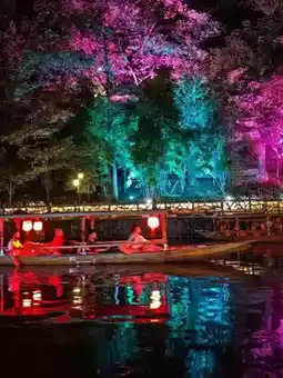 On October 7, we traveled from Zhangjiajie to Fenghuang (凤凰) by train, which took about 50 minutes. I purchased the tickets through Trip.com. Fenghuang is divided into the new and old towns. The old town features architecture from the Ming and Qing dynasties and is home to the Miao and Tujia ethnic groups. We reached our hotel by taxi. We happened to arrive during a festival, and along the river, many women in traditional costumes were having photoshoots.