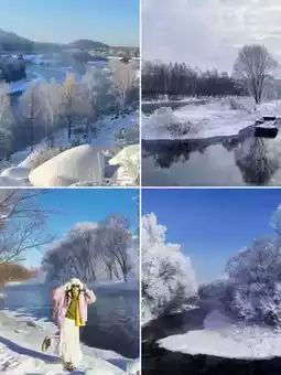 ❄️【Ku'erbin Rime】Winter-exclusive magic! -30°C unfrozen river mist creates kilometer-long rime corridors, with sunrise painting surreal blue ice and pink-gold frost scenes - Northeast China's most photogenic winter spectacle.