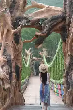2️⃣ Crouch in the middle of the suspension bridge for “walking in a painting” shots