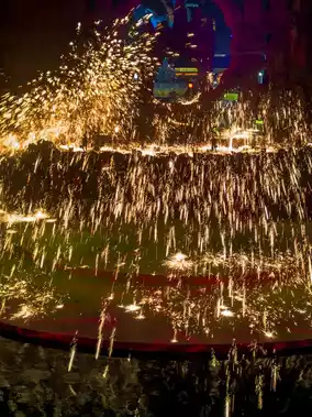 Intangible cultural heritage fire shows performed one after another, including iron flower throwing, fire pot, fire dragon... The scenes are spectacular, and standing in the front row gives a stronger visual impact!!