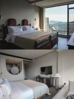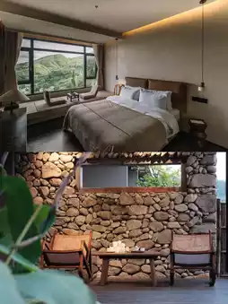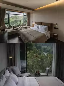 A private space enclosed by bamboo fences, with bougainvillea climbing all over the walls 🌸 Stone paths lined with succulent pots, the round and plump "Peach Egg" and "Bear Cub" are so cute they’ll melt your heart. Squat down to take photos and instantly turn your shots into fairy tale storybook scenes 📸 The rooms feature transparent floor-to-ceiling windows that frame the entire field like a painting. Pull back the curtains in the morning to a sea of green—breathing feels fresher already~