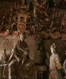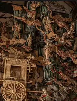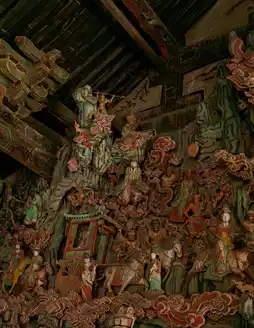 Taifu Temple, ranked fifth in the country, is considered one of the eight major hanging sculptures. The magnificent hanging sculptures in the Hall of the Five Mountains and the Hall of the Mother of Hou Tu make people feel as if they are very close to the fairyland. From the Mother of Hou Tu to the Five Mountains and Four Rivers, these hanging sculptures from the late Ming Dynasty all show how much the people of Fenyang cherish the land. These hanging sculptures present the ceremonial procession of the immortals in another form. Compared with murals, the hanging sculptures have a stronger sense of movement and layering, rendering the appeal of clay sculptures to the fullest.