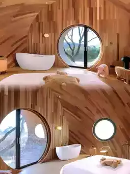 There are 20 tree house guest rooms, 5 types of rooms, 4 seed tree houses, 1 mushroom tree house, 4 butterfly tree houses, 6 lotus leaf tree houses, 5 ladybug tree houses, each type of tree house is inspired by natural species.