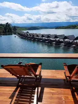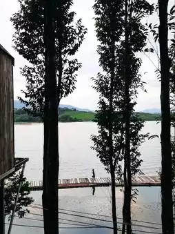 📍Overall, we think Angnamtong View Resort is a landmark of Mueang Phueng. The resort's setting, nestled among the tall trees by the reservoir, offers beautiful views and plenty of photo opportunities. It's quiet and peaceful, perfect for those seeking a truly relaxing getaway, those with their own car, or those who want to rent a car for the entire trip. Since it's quite far from Mueang Phueng, the resort doesn't have cars for rent, so we couldn't go anywhere. This time, we traveled by public transport, so we just soaked up the atmosphere at the resort (it's worth the price 😆). For those who like activities, we recommend staying at a floating raft on the Don Klang Yai beach, where it's easier to find food. Just a short walk away is the community and shops. There are boat trips, alms giving, and cliff tours. And most importantly, they sell hot pot (moo tha)! However, our accommodation didn't have any! 😂 If you're staying in another area, you can stop by to take photos or enjoy coffee at Ang Nam Tong. If you're interested in getting to Muang Fuang by bus, feel free to contact us for more information.