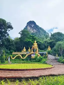 Surrounded by mountains and beautiful, lush greenery, the temple boasts a stunning mountain and forest landscape, making it a popular destination for those seeking blessings.