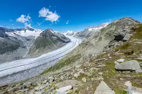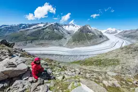 The Aletsch Glacier, at 22.6 kilometers long and covering an area of 117.6 square kilometers, is shrinking every year. This millennia-old glacier has been included in the UNESCO World Natural Heritage list.