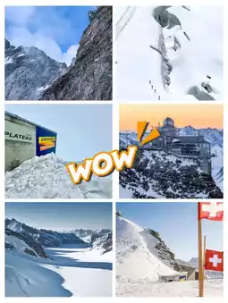 📍 Jungfraujoch: Ride the cable car to the summit—the ice sculptures in the Ice Palace are breathtaking ❄️