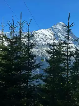 Surrounded by majestic peaks such as the Eiger, Mönch, and Jungfrau, all over 4,000 meters high, the scenery is especially dazzling during sunrise and sunset. The "Eiger North Face," a 1,800-meter vertical cliff, is renowned as one of the world's most challenging climbing routes. Glacial streams flow through the valleys, carrying autumn leaves on their clear waters, while in summer, sunlight glistens through the grass, illuminating the forest.