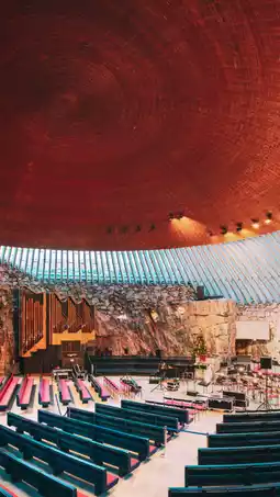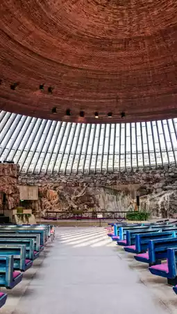 ⛪ Rock Church: Another must-see is the Rock Church, or Temppeliaukio Church. This church is made from natural granite, surrounded by a copper roof and natural light streaming through a glass ceiling, creating a peaceful and sacred atmosphere. Perfect for meditation or listening to a classical concert in a unique atmosphere.