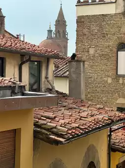 Our room had a private terrace overlooking the beautiful Arno River, and the view of the Ponte Vecchio across the river at night was amazing! The room was spacious and bright, with exquisite decor and a very comfortable bed that made us feel completely relaxed. The room was equipped with modern facilities, and the whole stay was great! There was also a thoughtful housekeeping service every day, and the kids loved the candy gifts on the bedside table.