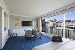 Our room featured a private terrace overlooking the poetic Arno River. The room was clean, tidy, and stylishly decorated, with an exceptionally comfortable bed. Daily housekeeping included thoughtful touches like small gifts left on the bedside table. 🛏️❣️ Our family thoroughly enjoyed our stay, especially the stunning views from the terrace. Evening drinks and sunsets there were pure bliss.