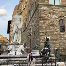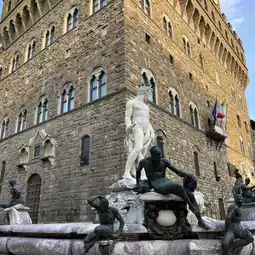 This is the political center of Florence and also an outdoor statue museum. There is a replica of Michelangelo's "David" and several large statues in the square. The Town Hall (Old Palace) still retains the medieval symbol of power.