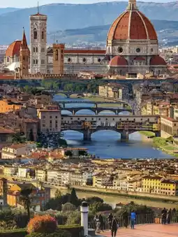 It's said, "If you haven't seen the sunset at Piazzale Michelangelo, you haven't truly been to Florence." From here, you can enjoy panoramic views of the city center, including landmarks like the Ponte Vecchio, Florence Cathedral, Basilica of Santa Croce, and Palazzo Vecchio. The best time to visit is at sunset.