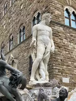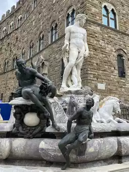 Start your journey in Piazza della Signoria, the city’s open-air gallery. Here, you’ll find Michelangelo’s David—or rather, its flawless replica standing proudly in front of Palazzo Vecchio, while the original masterpiece is kept in the Galleria dell’Accademia just a short walk away. Alongside David, the square hosts Cellini’s Perseus, holding the severed head of Medusa with chilling elegance, and Giambologna’s Rape of the Sabine Women, a twisting marble marvel capturing movement like few sculptures ever have.