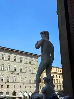 Piazza della Signoria, built in 1299, was once the political center of the Medici family. Piazza della Signoria boasts numerous statues, including a replica of the famous David and the Fountain of Neptune. The artist's skill in sculpting the muscles and ridges of the human body is remarkably realistic and beautiful. Each sculpture captures the ideal of the body's curves and tells a compelling story.