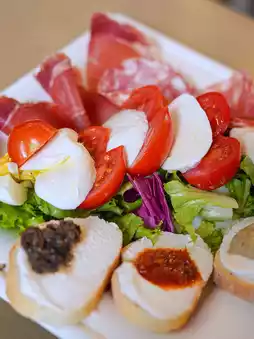 In addition to truffle dishes, they offer fresh salads made with local ingredients, and salad plates featuring crusty baguettes topped with various pastesādefinitely worth trying! š