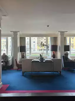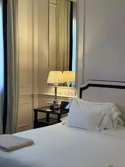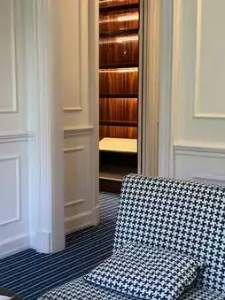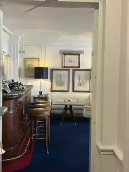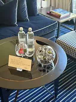 Located right next to the Arno River with a prime view of the Ponte Vecchio. The interior features a nautical navy and white theme, adorned with artistic pieces, creating a luxurious and sophisticated ambiance. Both the lobby and rooms are clean and stylish.