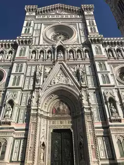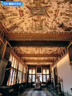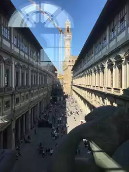 At noon, we toured the famous Uffizi Gallery with our guide, Mr. Zhou. We saw paintings like The Birth of Venus, Spring, and a portrait of Emperor Kangxi. Inside the gallery, we also had a fantastic view of the Ponte Vecchio. The small houses that once stood on the bridge, where a meat market was built, have surprisingly survived to this day.
