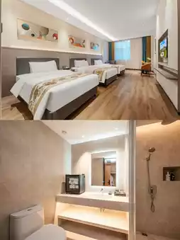 🏠 This time, I chose a deluxe double room with amazing natural lighting ☀️! Opening the window revealed lush greenery, instantly soothing. The room was cozy with soft, skin-friendly bedding, ensuring a great night's sleep 😌. The bathroom was well-equipped with separate wet and dry areas, making the stay super comfortable.