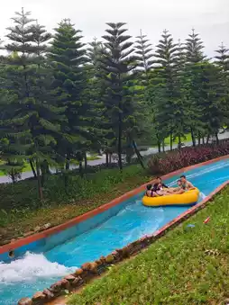 Day 1: Check-in → Water Park fun → Wonderful World (dinosaurs + pets + rides) → Forest Hot Springs