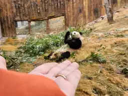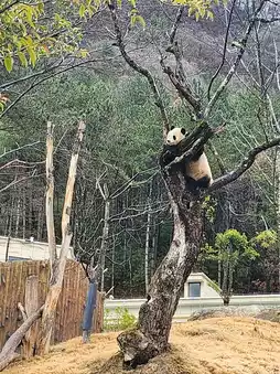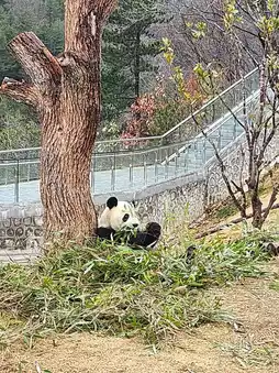 Foping Panda Base has four pandas, the environment is quiet, the playful Qin Yun panda is particularly cute, can pretend to be lame and slide on grass, is very good at business, and can also play hide and seek.