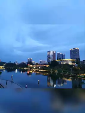Then we went upstairs to find something to eat. The map showed that there was a pedestrian street next to it, but there was actually nothing there. There were people busking, but no tourists. On the contrary, it is very beautiful to witness the lights of the lake turned on from dusk to night.