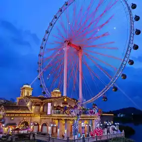 The Shunde Eye Ferris Wheel charges from 99 yuan. Each carriage can accommodate up to 6 people. There are family rooms, couples' rooms, etc., which offer a 360° view of Happy Coast PLUS.
