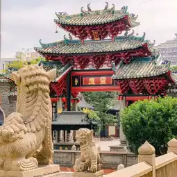 The Wanfu Terrace, Confucius Temple, Ip Man Hall, Huang Feihong Memorial Hall, etc. in the temple...