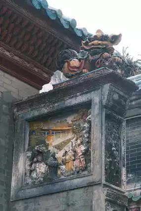 The entire temple is built according to the mountain. During the reconstruction of the past dynasties, the Lingnan characteristic gold, stone, wood carving, brick carving, ash carving, especially the wall ash sculpture is lifelike, and the ceramic group painting is very rich and good-looking.