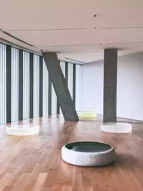 As soon as we entered, we were attracted by the architectural design of the art gallery, which was designed by Tadao Ando, who created the space with concrete, glass, steel and other materials