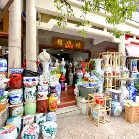 👉Shiwan Town has been known as "Shiwan tiles, the best in the world" since ancient times. Shiwan Doll Street was launched around 1998. It is located next to the Nanfeng Ancient Stove Scenic Area, a national key cultural relic protection unit. It covers an area of 25,000 square meters. There are many shops selling ceramic art and the first ceramics store in Guangdong. The industry museum, Guangdong Shiwan Ceramics Museum, adopts the antique architectural style of the Ming and Qing Dynasties.