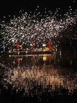 ♦Ling Chao Grand Performance with fluorescent lion dance drumming, prosperous fish lantern dance, Cantonese opera performance