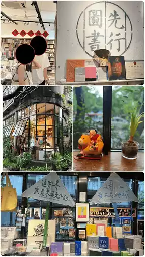 We arrived at the hotel smoothly at nine o'clock on Saturday after a two-hour ride on the high-speed train and the subway (Picture 1). The hotel is located on the periphery of Qinghui Garden, and we could see the scenery of Qinghui Garden through the window, which was quite nice. After a short rest and leaving our luggage, we went to Huagai Road to find something to eat. Huagai Road is a street full of specialty snacks, offering a wide range of choices. We had fish noodles and fish skin, then went back to the hotel to rest. At two o'clock, we first visited Qinghui Garden, and after that, we took Line 3 to Tongji Road. Tongji Road is a street full of coffee shops, each with its own characteristics, but my friend and I are not very interested in coffee. Instead, we found this tea shop filled with green plants (Picture 2) quite special, so we went in for tea. We also visited Xianxing Bookstore (Picture 3), intending to order something and read quietly by the window, but it was too crowded and noisy, so we left. We strolled around and did some window shopping at the coffee shops there.