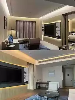 Foshan Courtyard by Marriott and Marriott are in the same building. The first floor is the lobby of Courtyard by Marriott, the second floor is the lobby of Marriott, the lower floors are Courtyard by Marriott's guest rooms, and the upper floors are Marriott's guest rooms.