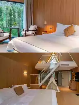 The hotel is located at the foot of Zaomu Mountain, a peaceful place that is a dream come true for city dwellers. 🏡