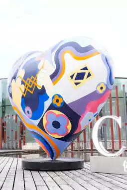 💙|The heart-shaped installation on the outdoor platform on the 5th floor of Cordis Foshan Lingnan Tiandi Hotel features illustrations with geometric cut lines inspired by the Manchurian windows of Cantonese culture. It also incorporates local features such as the wok ear house, clock tower, Ancestral Temple, Shunde fish lantern, and banyan tree of Lingnan Tiandi. The installation is decorated with blue, which symbolizes a bright future, and Cordis' vibrant orange, making it beautiful and eye-catching!