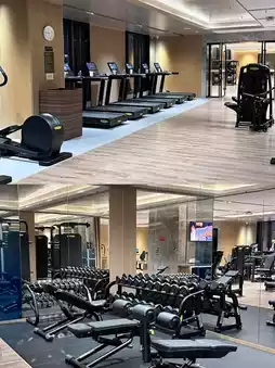 The hotel gym is open 24 hours a day, and you can swim there. This is great for fitness enthusiasts.