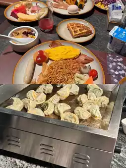 What surprised me was that although there were a lot of people at breakfast on the fifth floor, it was the first time I had to wait in line for breakfast at a five-star hotel. However, I only waited for about 5–8 minutes before I went in. The dining area is quite large, but it's a little noisy. Everything else is fine. I happened to find a seat by the window, where I could see the park. The view was nice. Fortunately, the breakfast tasted good. If it didn't, I might not have had the patience to wait.