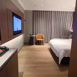 🛏Room: The ceiling is very high, not depressing, and the space is very large, about 30 square meters. It is a light luxury style, simple and stylish, and the design materials look very high-end! The room is equipped with a leisure sofa and a round table, so you can watch TV series and eat takeout with friends. The bed is neither too soft nor too hard, just right. The pillows are soft and memory. I am used to sleeping on memory pillows at home, and the hotel just happens to have them. It is not noisy at night, and I sleep very comfortably.