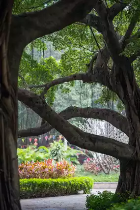 Walking into the park, you will see green trees and grass everywhere, full of life. The big banyan trees are like big umbrellas, with lush branches and leaves, shading the sun, and a sense of tranquility that makes people feel relaxed and happy.