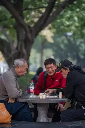 Under the shade of the trees, citizens rest, either closing their eyes to rest, talking softly, sitting around playing cards, walking their dogs, or fishing together. Especially in the afternoon, the sun shines through the leaves and onto the ground, creating a mottled light and shadow, with light spots jumping around. The dynamic light and shadow and the scenes of life show the atmosphere of a peaceful time.