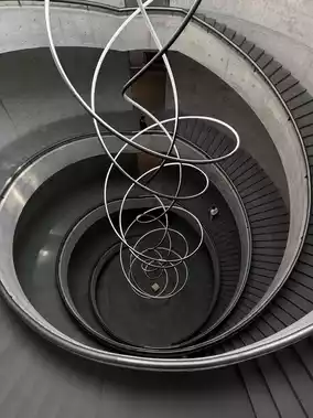 ✅The double helix staircase, like a vortex of time, leads visitors deep into the infinite abyss of art.