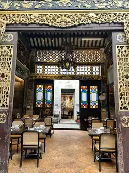 This restaurant is hidden in an alley near Qinghui Garden. From the outside, it looks like a self-built house that has been converted into a restaurant, with an antique style. It is actually an old house from the Ming Dynasty. The restaurant has two floors, with a hall, open private rooms, and a kitchen on the first floor, and private rooms on the second floor.