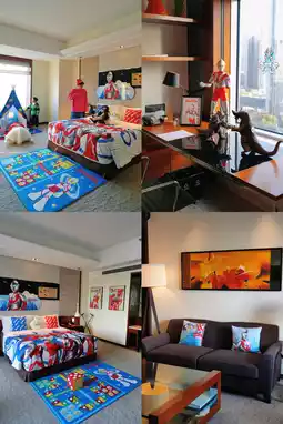 🏠Family-themed room: The Ultraman room is very well decorated, with IP designs everywhere, and the kids love it. The bedding is comfortable, and the children's facilities are complete, with full marks for details! You can check in with nothing, and the room can be connected to a double room, which is convenient for the whole family to travel.