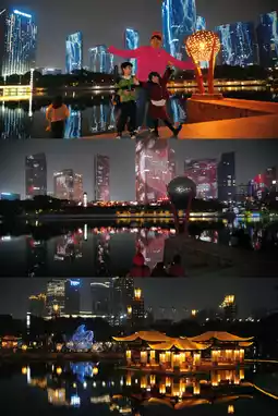☑️Qiandeng Lake: Enjoy the scenery during the day and watch the light show at night, there are many food stalls around, you can eat and play at the same time.