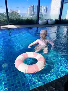 🏊♀️ The children's play area on the first floor is so much fun, with a train, slide, blocks, and cute mascots to take photos with. The heated pool on the third floor is warm even in winter, and parents can relax at the spa. The Lingnan elements in the elevator are very cultural.