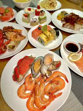 The buffet dinner has a wide variety of options, including sashimi, seafood, and desserts, and every bite is so satisfying! Breakfast is also good!
